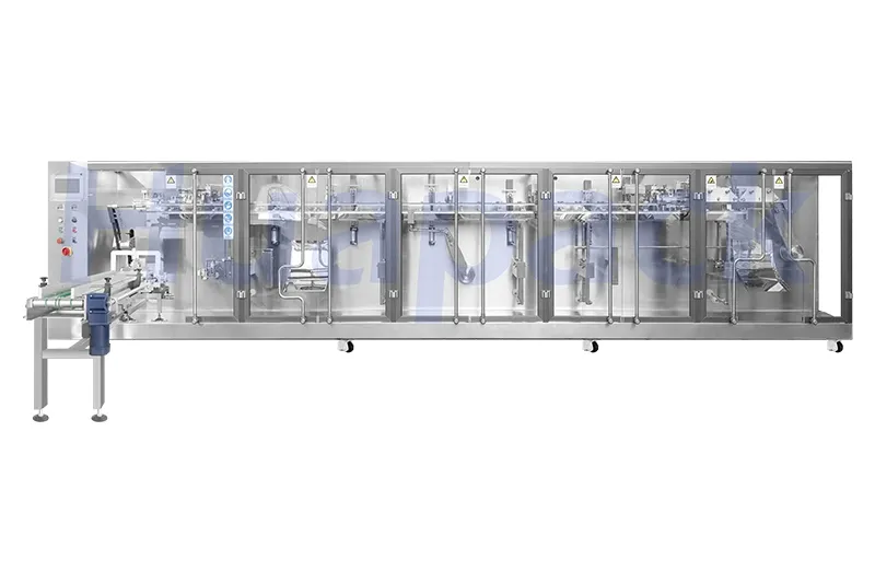 Designed for high-output production and large orders, these horizontal premade pouch packaging machines handle filling volumes of up to 1500 ml and can work with pouch-in-pouch formats, where a separate inner pouch is accurately placed inside the main outer pouch to create a double-layer package. They have an structure that is useful for special applications, such as packing two reactive components separately in the chemical industry so they only mix at the point of use. An intelligent control system manages the filling of the inner and outer pouches independently, which allows different products and filling sequences to be set and controlled with good accuracy and stable operation.
